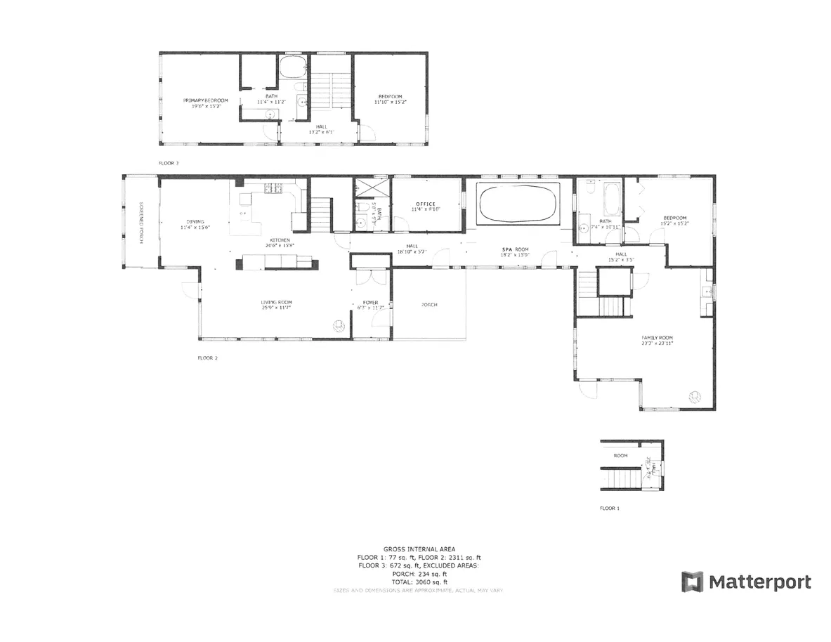 - Bathrooms: 3 (1 full, 2 three-quarter)